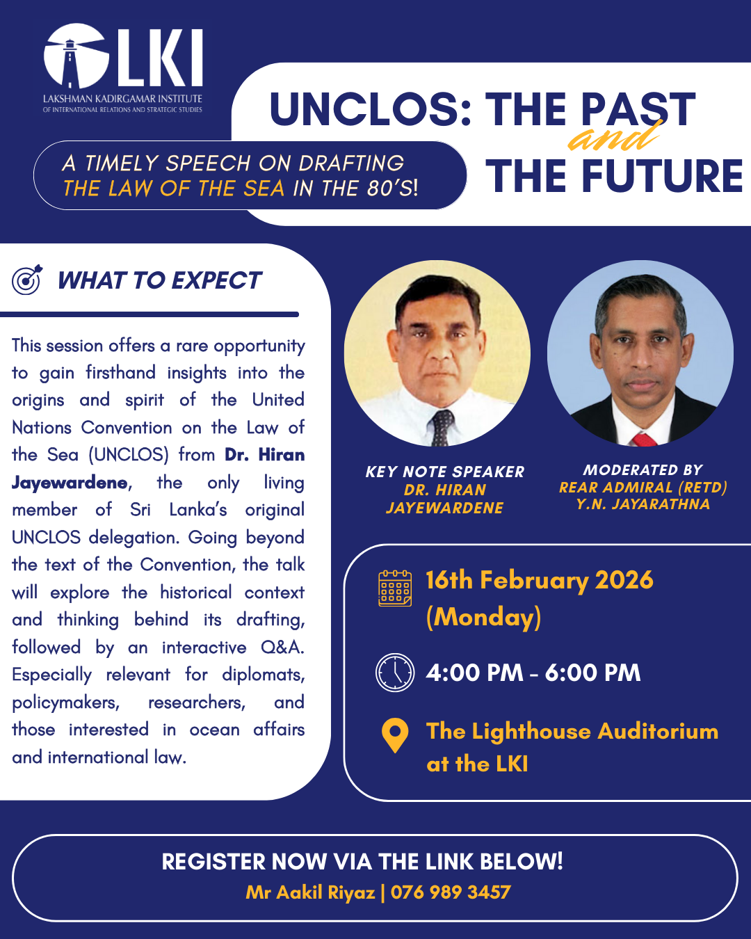 On the 16th of February 2026, the Lakshman Kadirgamar Institute for International Relations & Strategic Studies (LKIIRSS) hosted a discussion titled ‘UNCLOS: The Past & The Future’ with Dr. Hiran Jayewardene as the key speaker.