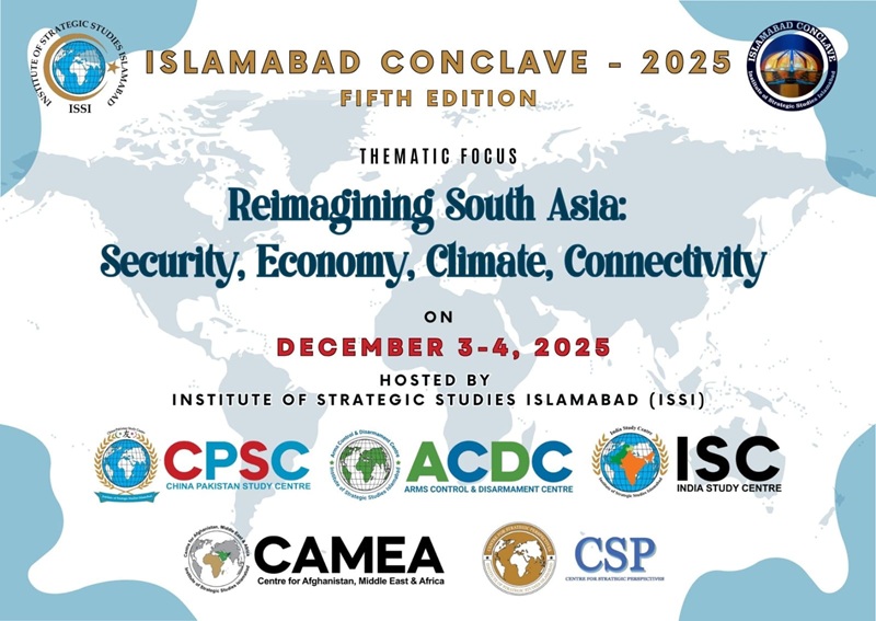 The Islamabad Conclave is the annual flagship event organized by the Institute of Strategic Studies Islamabad (ISSI). The Conclave sought to bring together the highest echelons of policymakers, intelligentsia, academia, and thought leaders from Pakistan and abroad at a single platform to find innovative solutions to complex political, security, and economic challenges and non-traditional threats affecting Pakistan, the region, and the globe.