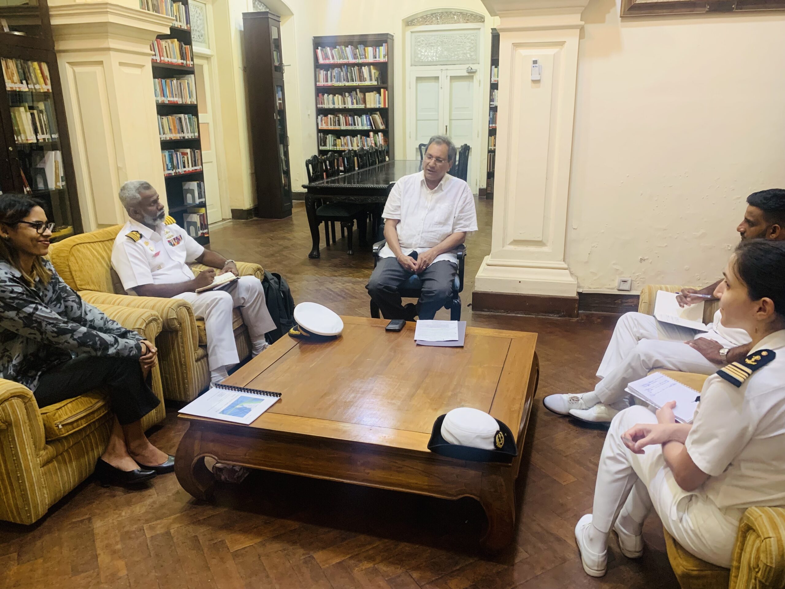 சர்வதேச உறவுகள் மற்றும் மூலோபாய ஆய்வுகளுக்கான லக்ஷ்மன் கதிர்காமர் (LKI) நிறுவனத்தின் நிறைவேற்றுப் பணிப்பாளர், தூதுவர் ரவிநாத ஆரியசிங்க, கடல்சார் ஆய்வுகளுக்கான பிராந்திய மையத்தின் இயக்குநர், கேப்டன் சமிலா மெண்டிஸ் (Captain Samila Mendis), கடல்சார் ஆய்வுகளுக்கான பிராந்திய மையத்தின் ஆய்வுகள் இயக்குநர், லெப்டினன்ட் கமாண்டர் கரேன் புசாட் (Lieutenant Commander Karen Busat) மற்றும் ஜெனரல் சர் ஜான் கொத்தலாவாலா பாதுகாப்பு பல்கலைக்கழகத்தின் (KDU) ஆய்வுகள் இயக்குநர், லெப்டினன்ட் கமாண்டர் மனரங்க திலகரத்னே (Lieutenant Commander Manaranga Tillakaratne) ஆகியோரை ஜனவரி 22, 2025 அன்று LKI இல் வரவேற்றார்.