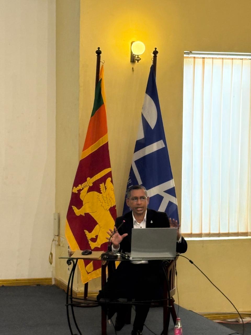 He spoke particularly on Sri Lanka’s neighbourhood, illustrating the various circles of influence surrounding Sri Lanka. The primary circle of influence is well known: India, China and the USA. However, it was analyzed that the second circle of influence comprised of Russia, Pakistan, and Japan, with Bangladesh, Maldives, UAE, Saudi Arabia and Australia populating more outward circles.