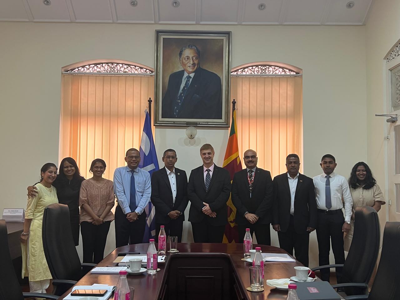 On 23 September 2025, the Lakshman Kadirgamar Institute of International Relations and Strategic Studies (LKIIRSS) welcomed representatives of the South Asia Sustainability & Security Research Institute (SASSRI), headed by the Institute’s Executive Director Col. Nalin Herath, for an academic discussion. The team included Prof. Dr. Christian Kaunert, Professor of Policing and Security and Director of the International Centre for Policing and Security (University of South Wales, UK), and Mr. Anant Mishra, Marie Curie Research Fellow at University of South Wales, UK and doctoral candidate within the EU-funded GLOCTER network.